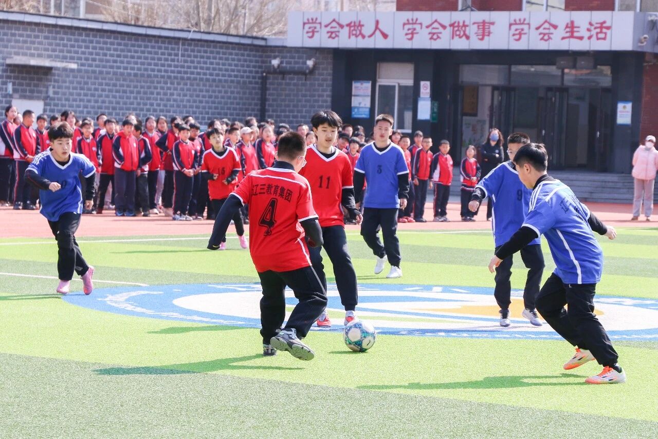 本次联赛以足篮双赛为核心,践行“健康第一”理念,是大东区深化体教融合、推动校园体育高质量发展的创新举措。仪式现场,开球仪式点燃激情,师生们带来的足球操、啦啦操展演精彩纷呈,校园活力四射。赛事覆盖两校区、多年级,设置多元赛制,让每一名孩子都能站上赛场。