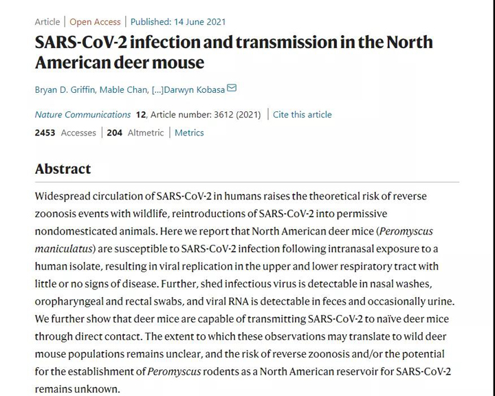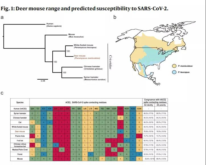科技日报记者调查发现,今年6月14日,加拿大科研人员在英国《自然·通讯》杂志上发表论文,发现新型冠状病毒可感染北美鹿鼠并在鼠间传播。研究为进一步了解新冠病毒中间宿主及其传播途径提供了线索。 鹿鼠是啮齿动物仓鼠科的成员,与易感染新冠病毒的叙利亚仓鼠密切相关,广泛分布在北美。鹿鼠是几种已知的和新出现的人畜共患病病原体的天然宿主,这些病原体包括伯氏疏螺旋体、鹿蜱病毒(DTV)和引起汉坦病毒肺综合征(HPS)的新型汉坦病毒(SNV)。由于这些风险因素,研究人员研究了鹿鼠感染及传播新冠病毒的情况。 在检查鹿鼠体内的ACE2受体蛋白与人类ACE2受体蛋白的一致性后,研究人员得出结论,鹿鼠很可能对新冠病毒易感。研究人员还发现,氨基酸差异不太可能对刺突蛋白结合效率产生有害影响。 研究使用新冠病毒细胞培养液感染北美鹿鼠,发现病毒可在北美鹿鼠上呼吸道和下呼吸道复制,但不会引起宿主的病变。受感染的鹿鼠能够在共同饲养时通过直接接触将新冠病毒传播给幼崽。 另外,在北美鹿鼠的洗鼻液、口咽和直肠拭子中均检测到具有传染性的病毒,在其粪便和尿液中检测到病毒RNA。尽管鹿鼠体内病毒载量很高,肺部和血清转换中的炎性细胞因子水平也有所升高,但研究人员只观察到了无症状感染或轻度疾病。 新冠病毒等新型病原体可能被引入易受感染野生动物,这种可能性或将产生毁灭性的后果。而本研究的实验表明,成年鹿鼠容易受到实验中从人类分离的新冠病毒的感染,这引发了人们对“反向人畜共患病”现象的担忧。新冠病毒传播回人类的风险也可能加剧当前的疫情大流行。 研究人员指出,人与鹿鼠之间传播的实际风险尚不清楚,对于新冠病毒如何在野生鹿鼠种群之间持续传播的风险仍然缺乏了解。 总体而言,研究人员认为,鹿鼠感染新冠病毒的模型作为一种主要由近交系繁殖的小动物模型,在寻找无症状感染、病毒持续和传播的决定因素,以及评估实验性疫苗和治疗药物的保护效果时,可能会被证明对研究病毒的发病机制很有用。 来源:科技日报 编辑:黄磊 审核:朱丽 终审:何屹 |