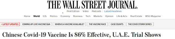 另据美国《华尔街日报》报道,阿联酋卫生和预防部12月9日发布的一份声明说,根据有关申请,阿联酋给予由中国国药集团研发的新冠灭活疫苗正式注册。这是阿联酋政府对该疫苗安全性和有效性的重大信任投票。 声明说,对Ⅲ期临床试验的分析表明,该灭活疫苗对抗新冠病毒感染的有效率为86%。这种疫苗具有99%的中和抗体血清转化率,以及100%防止轻症新冠向中度和重症转化的有效性。此外,分析表明该疫苗没有严重的安全隐患。