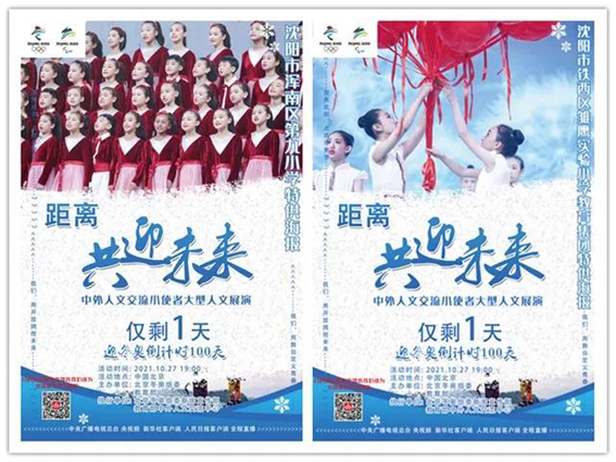 10月27日晚7时,“共迎未来”中外人文交流小使者“迎冬奥倒计时100天”大型人文展演将在中央广播电视总台、央视频、新华社客户端、人民日报客户端全程直播。市教育局组织推荐的两个优秀团队——浑南区第九小学和铁西区雏鹰实验小学受邀参加活动,他们将以最美的姿态向全国精彩亮相。