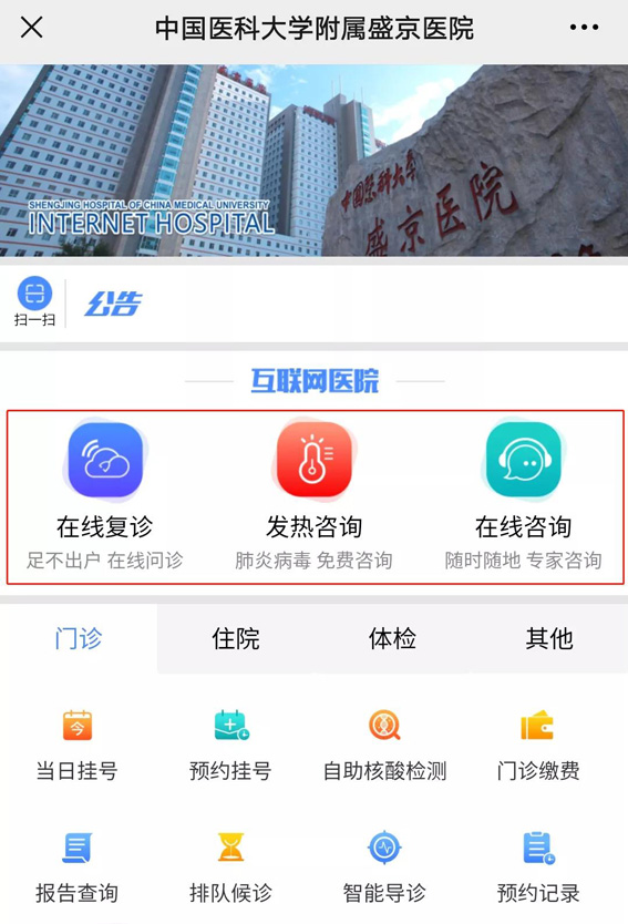 互联网医院中共有66个专业、132个科室、633位专家为您提供线上复诊及免费咨询服务。 1.在线复诊:半年内在盛京医院有过就诊记录的患者可以在线视频看诊、管理您的病志,为您预约检查并进行处方流转,部分药品提供送药上门和当地药房取药服务。 2.发热免费咨询 3.常规免费咨询:除常规科室外还包括了药师咨询、护理咨询、康复治疗咨询以及遗传咨询服务四大特色服务。 除此之外,自助核酸检测、预约挂号等功能均可在这个平台上实现,为您提供更多便利。 来源:盛京医院 编辑:郭金凤 责编:李淳 出品:沈阳日报社新媒体中心(沈阳网) |