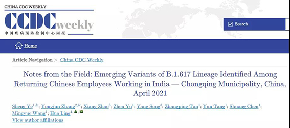 新冠变异病毒在印度传播颇受关注,我国输入风险也在增加。近期我国已有多地出现印度输入病例! 印度新冠变异病毒已流入国内! 5月1日,中国疾病预防控制中心在线刊发的《中国疾病预防控制中心周报》(英文)的一篇研究《Emerging Variants of B.1.617 Lineage Identified Among Returning Chinese Employees Working in India — Chongqing Municipality, China, April 2021》,披露了3例从重庆入境的新冠病毒确诊病例,经基因组测序发现这3例确诊患者感染的病毒为在印度流行的变异病毒,推测感染可能发生在印度。该论文研究作者来自重庆市疾控中心、中国疾控中心等。①