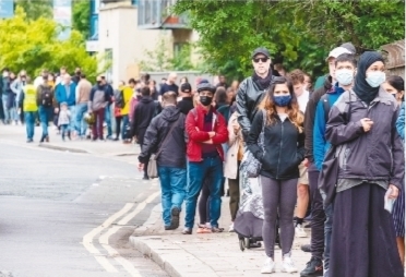 6月19日,人们在英国伦敦一家新冠疫苗接种中心外排队。英国英格兰地区18日起面向年满18岁人群放开新冠疫苗接种。英国政府希望,到7月19日彻底“解封”时,所有希望接种疫苗的成年人都能接种上至少一剂疫苗。