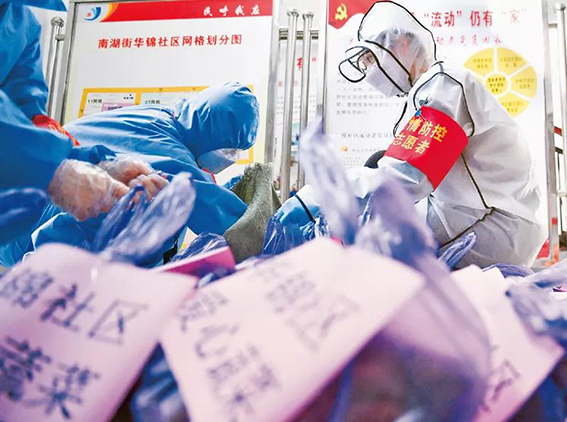 抗疫大战,惊心动魄,然而我们有党员、干部冲锋在前,有公安民警昼夜值守,有社区网格员随叫随到,有志愿者爱心接力……这些默默无闻的人们,守护着万家灯火,撑起每一座城市的生命线。图为2020年2月23日武汉市武昌区华锦社区的志愿者为社区居民分装爱心蔬菜。新华社记者 程敏/摄 社区虽小,却连着千家万户,是疫情联防联控的第一线,是外防输入、内防扩散最有效的防线。 习近平总书记指出,抗击疫情有两个阵地,一个是医院救死扶伤阵地,一个是社区防控阵地。要广泛动员群众、组织群众、凝聚群众,全面落实联防联控措施,构筑群防群治的严密防线;把防控力量向社区下沉,加强社区各项防控措施的落实,使所有社区成为疫情防控的坚强堡垒。 2月10日,习近平总书记来到北京市朝阳区安贞街道安华里社区。戴口罩,卷袖子,量体温,在社区居委会,他身体力行,号召全民战“疫”。3月习近平总书记考察湖北武汉市东湖新城社区,4月考察陕西安康市平利县老县镇锦屏社区,6月考察宁夏吴忠市利通区金花园社区,再到7月考察吉林长春市宽城区团山街道长山花园社区,社区出现在总书记今年考察行程中的频率很高,联防联控无时无刻不在牵动着他的心!
