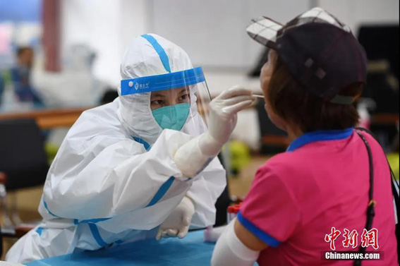 资料图:医护人员为市民做核酸检测。中新社记者 陈楚红 摄此前,一从南非约翰内斯堡入境深圳航班数十人核酸检测阳性也引发关注。截至20日,乘坐6月10日抵深的CA868入境者中,确诊病例已达38例。16日,民航局向国航CA868航班(约翰内斯堡至深圳)发出熔断指令,立即暂停其运行4周。