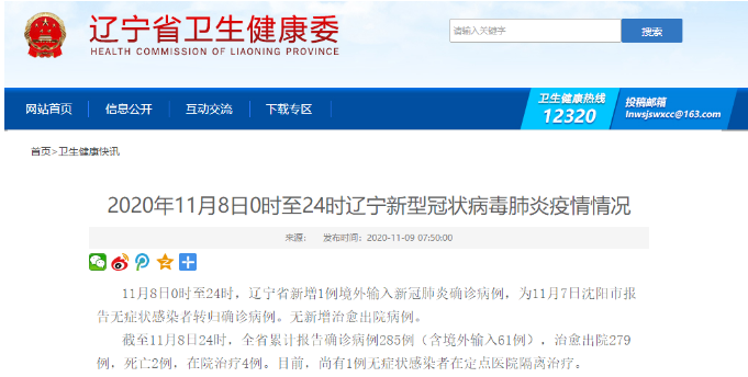 全国新增确诊病例33例其中本土病例1例11月8日0—24时,31个省(自治区、直辖市)和新疆生产建设兵团报告新增确诊病例33例,其中境外输入病例32例(上海13例,陕西6例,广东4例,四川4例,内蒙古2例,山西1例,辽宁1例,江苏1例),本土病例1例(在天津);无新增死亡病例;新增疑似病例1例,为境外输入病例(在上海)。 当日新增治愈出院病例19例,解除医学观察的密切接触者564人,重症病例较前一日增加1例。 境外输入现有确诊病例363例(其中重症病例2例),现有疑似病例5例。累计确诊病例3603例,累计治愈出院病例3240例,无死亡病例。 截至11月8日24时,据31个省(自治区、直辖市)和新疆生产建设兵团报告,现有确诊病例424例(其中重症病例8例),累计治愈出院病例81187例,累计死亡病例4634例,累计报告确诊病例86245例,现有疑似病例5例。累计追踪到密切接触者869505人,尚在医学观察的密切接触者16503人。 31个省(自治区、直辖市)和新疆生产建设兵团报告新增无症状感染者9例(均为境外输入);当日转为确诊病例1例(为境外输入);当日解除医学观察28例(境外输入19例);尚在医学观察无症状感染者804例(境外输入497例)。 累计收到港澳台地区通报确诊病例5997例。其中,香港特别行政区5374例(出院5144例,死亡107例),澳门特别行政区46例(出院46例),台湾地区577例(出院524例,死亡7例)。 来源:国家卫健委、辽宁省卫健委 编辑:崔扶尧 责编:闫继伟 高薇 出品:沈阳日报社新媒体中心(沈阳网) |