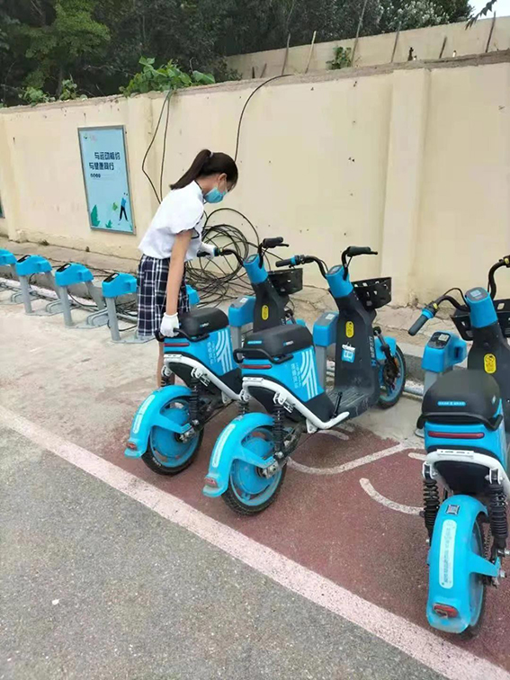 活动中,学生们将共享电动车摆放整齐,除去楼内外小粘贴,擦拭宣传栏,并在路面、绿化带和楼道中开展文明志愿随手捡活动。
