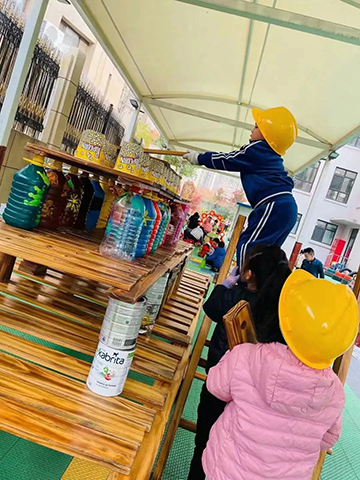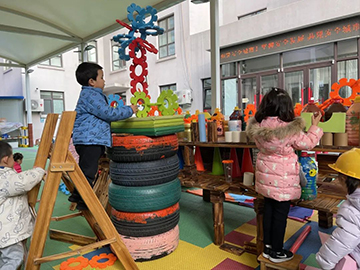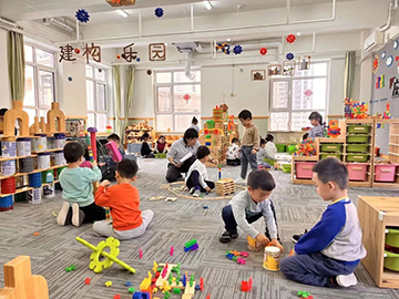 玫瑰湾分园不断加强科学化管理,制定切实可行的一系列保障措施。制定了各年龄段建构游戏技能发展的学习目标,为幼儿提供了专门的建构室,在班级也配备了大型建构材料、插塑等桌面玩具以及废旧物品等多种建构材料,为幼儿进行搭建提供了物质保障。 场地互通 互动美好