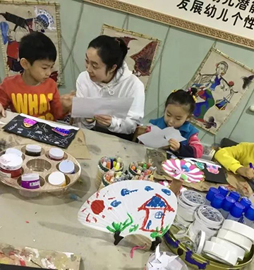 “美工坊”里有编织区、绘画区、泥工区等,作品墙上有孩子们制作的石头画、衍纸画、水墨画等……都是孩子们创作的艺术作品,在培养幼儿的创造力和想象力的同时,使孩子们在艺术的海洋里畅游。
