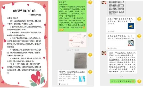 学习生活节奏被打乱了,但心理节奏不能乱。为帮助树立全体师生、家长抗疫信心,于洪区教育局发布《家校共携手 续航“心”动力——致家长们的一封信》,宣传防疫注意事项、患病后的护理常识、心理调适及心理援助途径等,号召家长与老师携手做好学生身心健康的“守护者”;各校班主任联手心理教师、校医对居家学习的学生和患病学生进行线上家访,关心他们居家学习、健康情况,了解家长在家庭教育、健康护理中存在的困扰,及时给予心理、健康支持,凝聚家长育人合力,齐心抗疫,携手同行;利用学校、班级微信群发布暖心提示和鼓励话语,号召全校教师、家长,团结互助,分享抗疫资源经验,共筑健康防线。