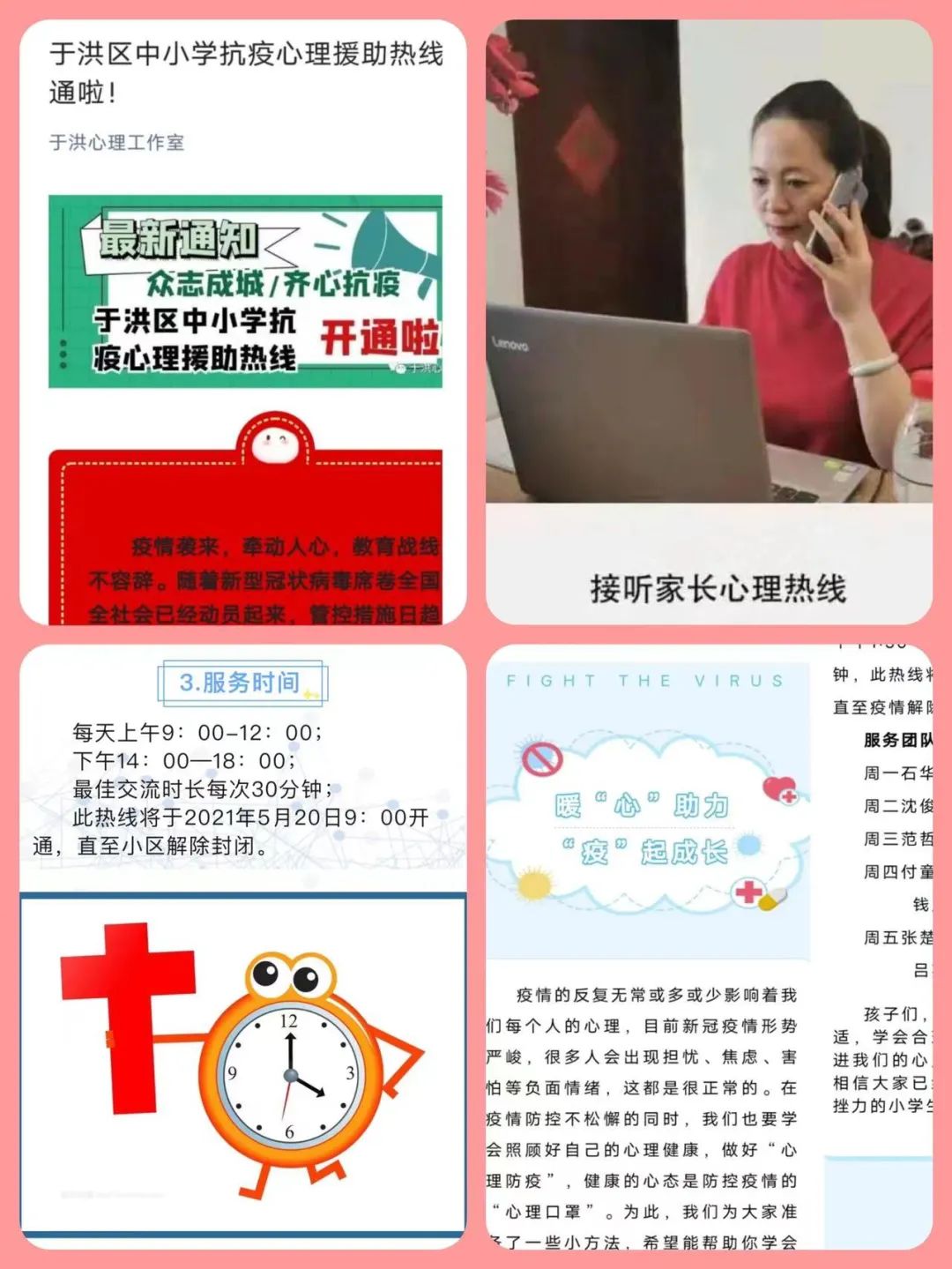 与此同时,于洪区心理健康中心及各校的心理援助专线24小时不断线,为家长、师生提供了公益、专业、规范、便捷的心理健康服务心理支持服务,有效增强了家长、师生的“心理调适力”和“心理免疫力”。
