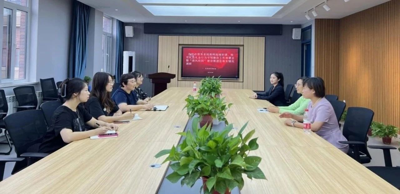 沈北新区教育局认真落实沈阳市教育系统教师违规补课、收受礼品礼金行为专项整治工作部署会暨“清风校园”建设推进会精神,制定方案,召开会议,扎实推进部署师德师风专项工作。 沈北新区教育局面向区教育局班子成员、局机关科室负责人、全区中小学校(幼儿园)正职领导召开师德师风建设推进会议,对全区师德师风建设工作进行了全面安排和周密部署。区教育局组成调研小组到学校进行暗访调研,多科室协同联动,严查在职教师违规补课、违规收礼,持续巩固“双减”工作成果,全力为中小学生营造一个幸福、充实、快乐的校园生活,营造风清气正的教师工作氛围。