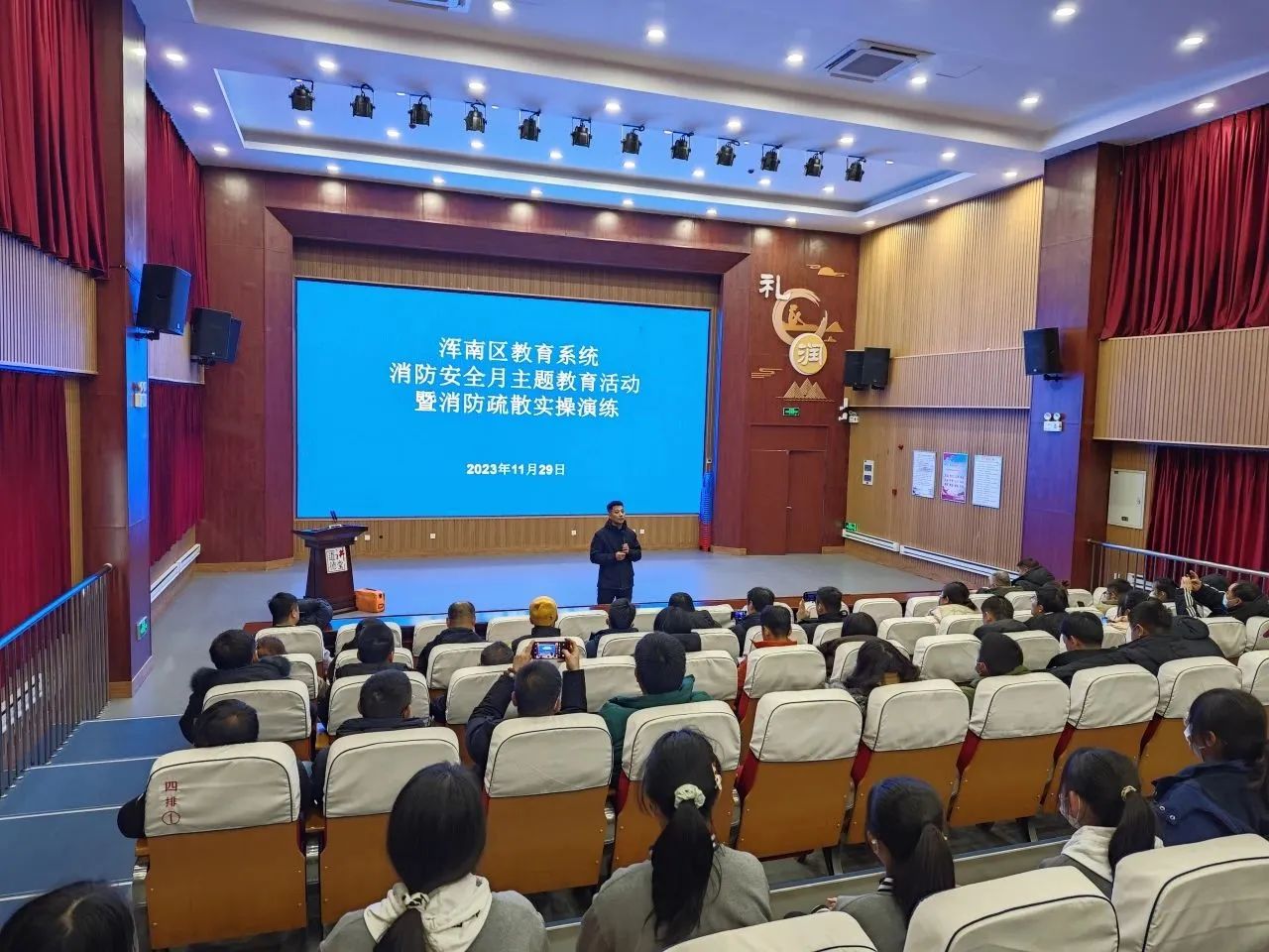 为进一步强化校园消防安全工作,切实提高师生消防安全意识及突发事件应急处理能力,有效预防和处置突发性火险事故,保障师生生命安全和财产安全,11月29日,浑南区教育局在浑南五中举行“浑南区教育系统消防安全月教育活动暨消防疏散实操演练”活动。区内各中小学、幼儿园安全主任及浑南五中部分师生代表100余人参加活动。