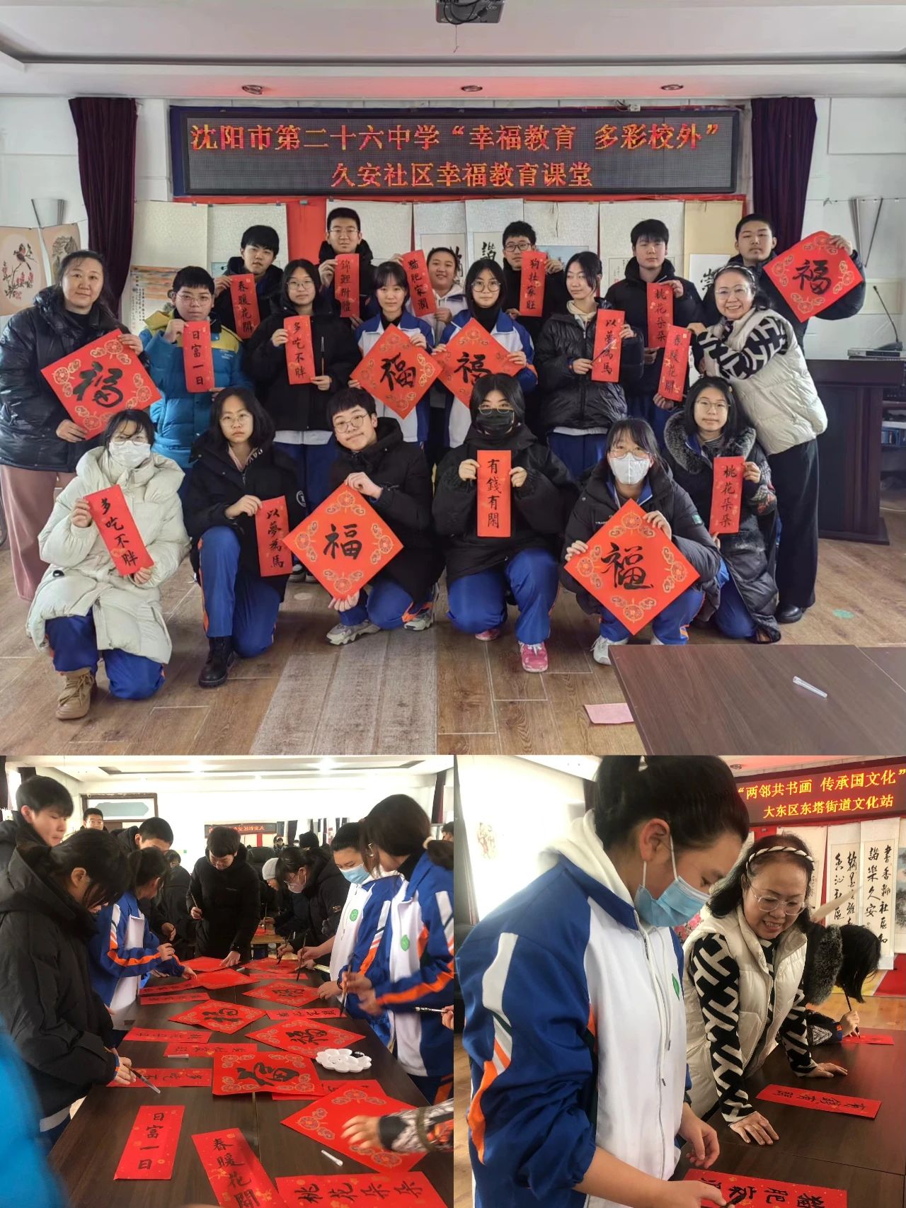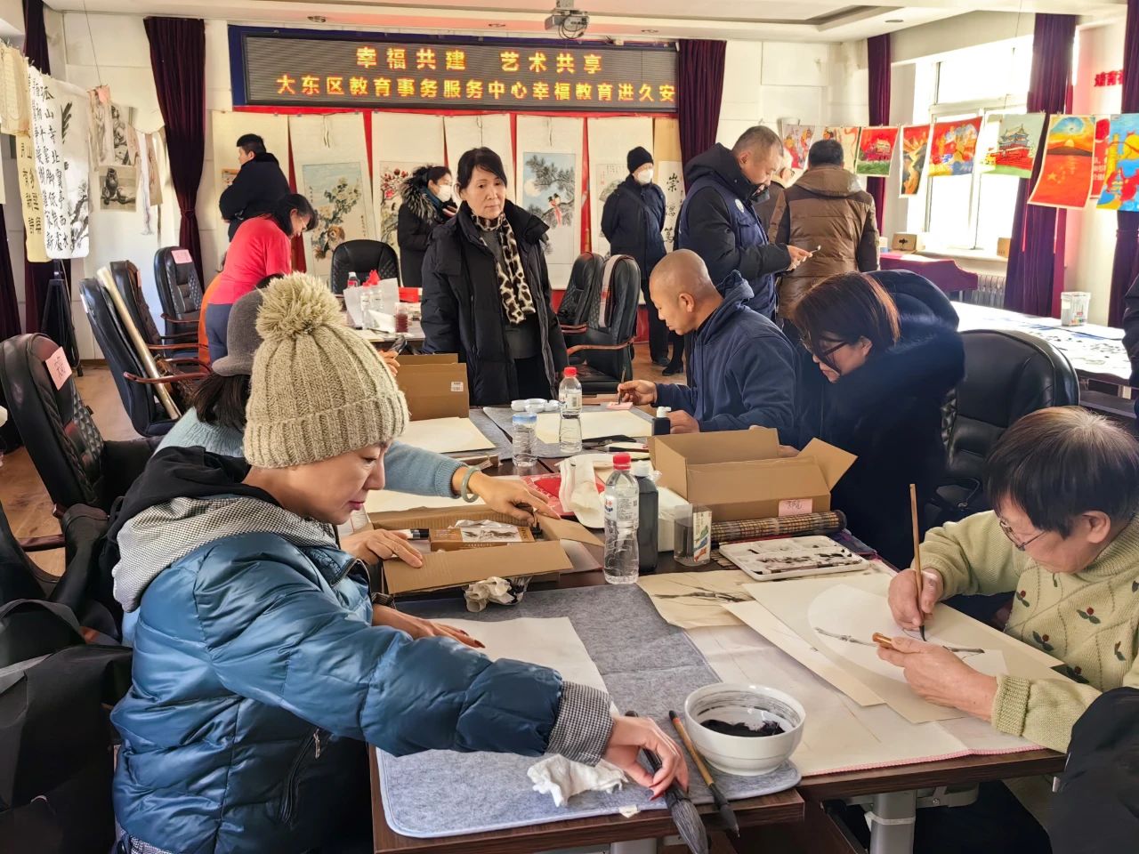 社区志愿者讲师团促融合 为进一步诠释社区幸福教育课堂内涵发展,大东区终身教育学院积极推动社区志愿者组建睦邻学习点,满足居民个性化课程需求。在元旦来临之际,各睦邻学习点纷纷开展书法、绘画、舞蹈、合唱等活动,以书言志、以画传情,有效地推进社区教育互学共享,切实提升社区居民的获得感和满意度。