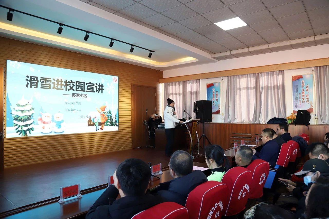 活动首先进行了滑雪课和冠军品格宣讲课,通过走进教室、走进课堂的方式,普及滑雪运动的必备常识,宣讲滑雪运动魅力、冬奥精神,还共同分享了徐梦桃等冬奥冠军的训练经历及夺冠历程,让同学们初步了解滑雪运动知识,建立对滑雪运动的兴趣。与会人员共同观看了陈相学校的短道速滑、趣味冰车、抽冰尜,沈水实验学校的轮滑,以及沈阳市第一七六中学的陆上冰壶等项目展示。