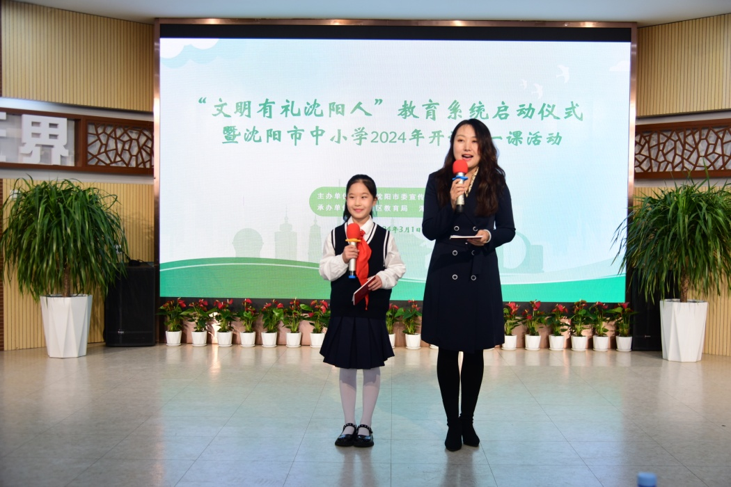 为广泛践行社会主义核心价值观,传承和弘扬文明有礼、向上向善等中华优秀传统文化,引导学生在新学期讲文明、树新风,“文明有礼沈阳人”教育系统启动仪式暨沈阳市中小学2024年开学第一课活动在浑南区第二小学举行。活动通过歌舞节目展示、《弟子规》情景剧展演、解读文明礼仪等形式,引导学生从中华优秀传统文化中汲取营养和智慧,在新学期为沈阳少年儿童发展奠定扎实的思想根基,进一步巩固和提升全市未成年人思想道德建设工作成果。