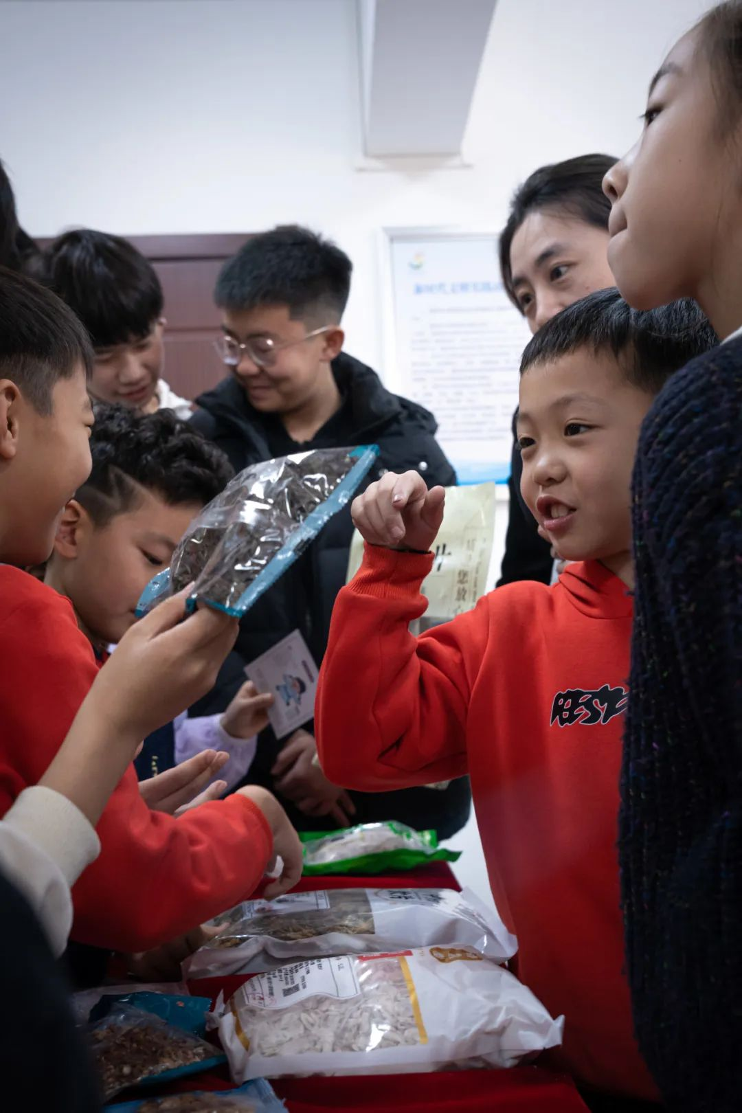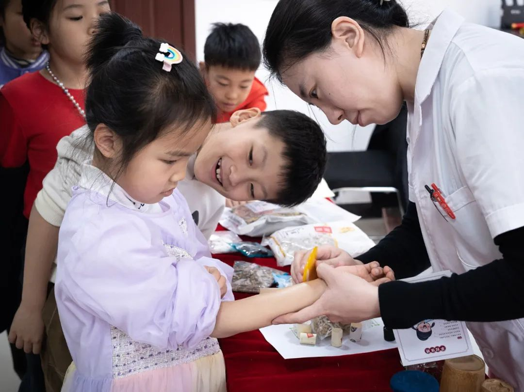 趣味识中药 -探索药材奥秘- 在趣味识中药环节,孩子们在展示台周围仔细观察药材的形状、颜色,用鼻子轻轻嗅着气味,还小心翼翼地触摸质地。在医生们的讲解下,他们认识了许多常见中药材。志愿者杨昀桥和王雨桐声情并茂地讲述悬壶济世和神农尝百草的故事,让孩子们深刻地领悟中医先辈的探索精神。