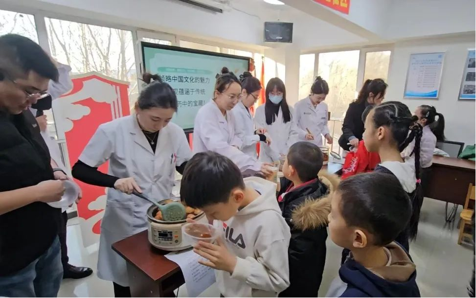 舌尖上的药食同源 -品尝养生美味- 舌尖上的药食同源环节中,大家一边享受美味的中药养生鸡蛋,一边听医生讲解鸡蛋在中医养生中的作用,现场还展示了根据体质熬制的桂圆红枣银耳羹、桑葚中药汤等养生汤,同学们了解到美食也能成为守护健康的好帮手。