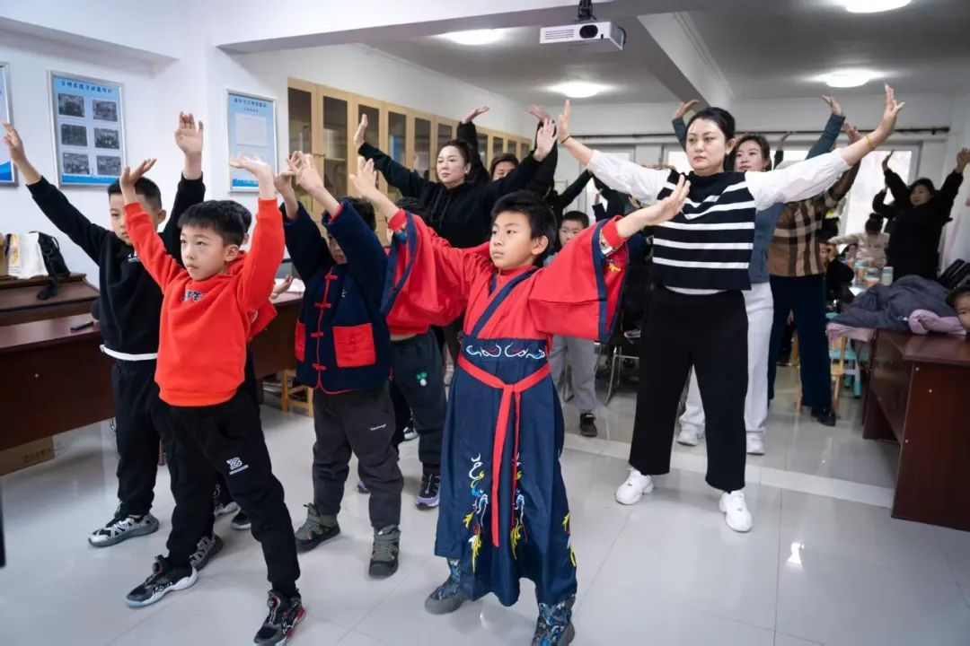 八段锦 -更适合中国宝宝体质的帕梅拉- 同学们在现场跟练八段锦,孩子们跟随着视频里老师的动作,试图精准复刻每一个抬手、转腰、踢腿的姿势。所有人都沉浸在八段锦的独特魅力中。