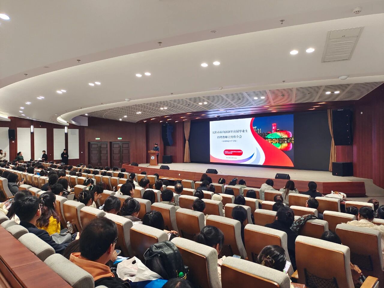 为做好我市今年面向国内部分高校2026年应届毕业生招聘教师工作,10月18日,市教育局组织部分中小学校赴东北师范大学开展沈阳市招聘教师高校宣传推介活动,吸引了千余名国内知名高校2026届硕士研究生参加。