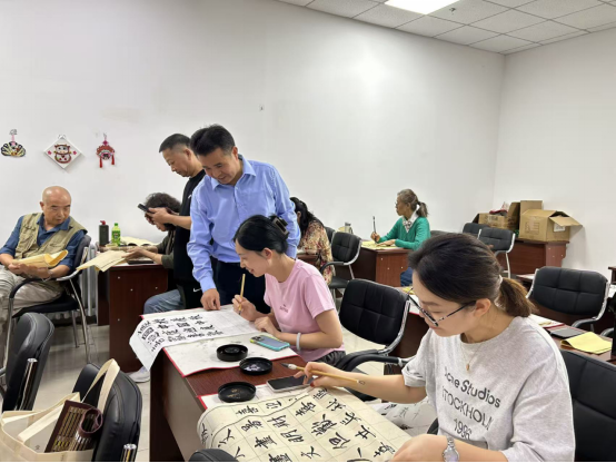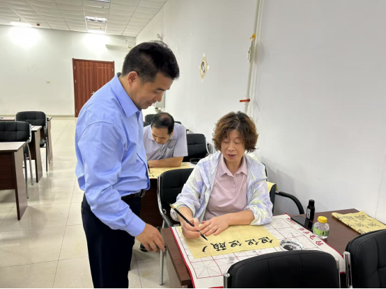 书法老师现场示范书写技巧,从起笔、行笔到收笔,细致讲解字体结构与章法布局,针对老年学员、青少年学员的不同基础,进行一对一指导,耐心纠正握笔姿势与运笔力度。