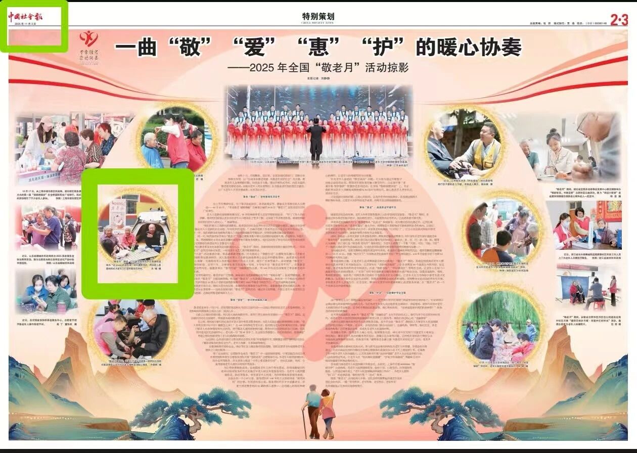 近日,由沈阳市教育局推送的和平区南湖街道“这young的老年派”欢乐露营活动,在2025年11月3日《中国社会报》全国“敬老月”特别策划专刊刊登。