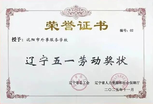 11月11日,2025年辽宁五一劳动奖表彰大会在辽宁人民会堂召开,沈阳市外事服务学校作为全省唯一获此殊荣的中等职业学校,代表我市教育系统登台领奖。此项荣誉是对沈阳市外事服务学校长期践行“以精品打造人品,以人品服务社会”办学理念的极大肯定,更是对我市职业教育坚持正确办学方向、深化内涵发展的充分认可。