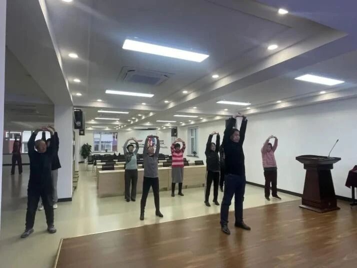 青年教师王一涵为居民们带来了精彩的绘画赏析课程,分别是《雕梁画栋》和《屋脊兽》,通过生动的讲解和丰富的图片展示,让居民们深入了解了中国传统建筑中的精美装饰的艺术魅力、文化内涵,带领大家领略了古代工匠的精湛技艺和智慧。综合课教师王恒带领居民们学习八段锦,帮助大家强身健体,放松身心。