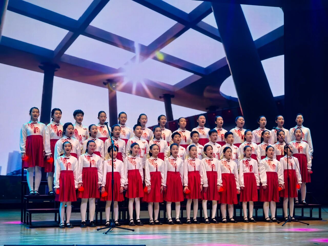 这些浸润式的教育实践不仅让青少年在体验中汲取精神养分,也在他们心中埋下了用艺术与语言抒发家国情怀的种子。成果展示活动现场,总结环节系统梳理了系列主题教育的实践成果与经验启示,而演讲、朗诵、舞台剧、合唱等多元展示形式,则成为青少年表达心声的生动载体。同学们以激昂的语言诠释信仰,用深情的表演致敬英雄,充分展现了对英雄精神的深刻领悟与传承决心,彰显出新时代中小学生爱党爱国爱社会主义的真挚情感。