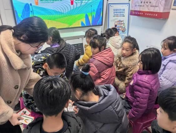 活动现场,二台子小学教师张芷琪以生动有趣的环保主题短视频切入,以图片对比社区前后环境、垃圾不分类的危害等直观画面,快速吸引孩子们的注意力。用亲切易懂的语言,分享垃圾分类对改善社区居住环境、保障家人健康的重要意义,结合“分类一小步,环保一大步”的通俗理念拉近距离,激发孩子们的参与热情。 张老师根据居民日常高频遇到的垃圾类型,结合垃圾分类小卡片,逐一拆解厨余垃圾、可回收物、有害垃圾、其他垃圾的官方分类标准与投放要求。用“看材质、看用途、看危害”的三字口诀帮助大家快速记忆。