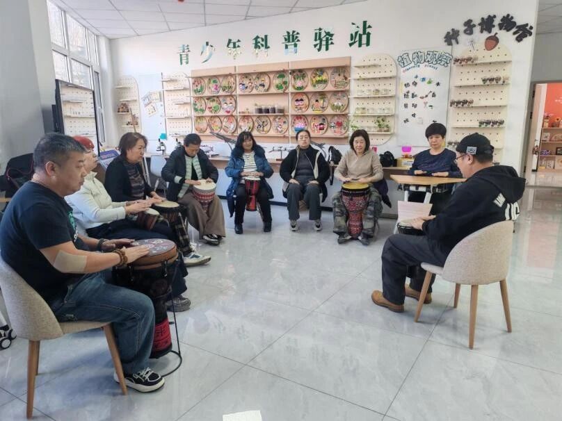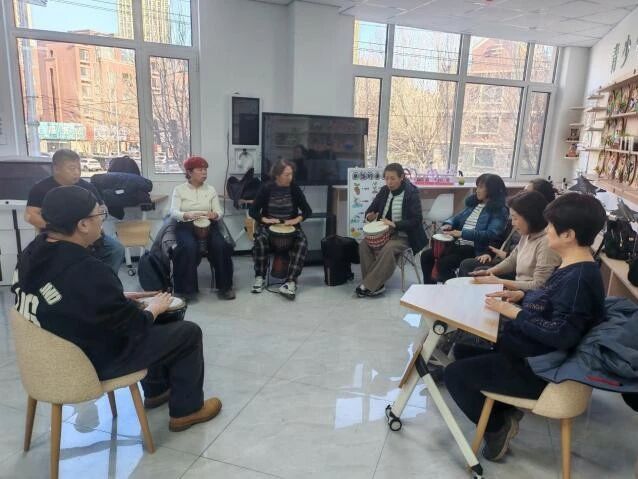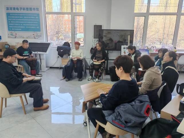 近日,于洪区南阳湖街道滨河湾社区幸福教育课堂内鼓声阵阵、暖意融融,一场面向退休居民音乐爱好者的成人非洲鼓公益志愿服务课热闹开讲。作为社区幸福教育课堂常态化开展的志愿服务项目之一,活动以音乐为纽带,让居民在欢快鼓点中解锁艺术乐趣,舒缓生活压力,更在邻里互动中感受社区温情。