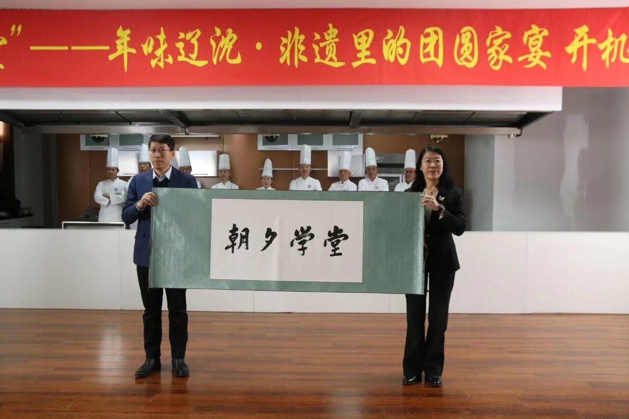 1月14日,“朝夕学堂·年味辽沈——非遗里的团圆家宴”开机仪式在沈阳市外事服务学校举行。本次活动由沈阳市教育研究院主办、沈阳市外事服务学校承办,旨在将国家级非物质文化遗产——辽菜的技艺传承与全民终身学习深度融合,打造贴近民生、服务大众的公益烹饪课程。沈阳市教育局、沈阳市教育研究院、沈阳市外事服务学校相关领导,以及中国特一级烹饪大师、国家级非遗项目辽菜传统烹饪技艺传承人刘敬贤等嘉宾共同出席了仪式。