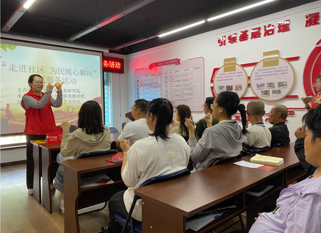 三、强化人才队伍建设,提升服务水平 一方面,定期组织校内心理教师参加实践操作、危机干预等方面的继续教育和专业培训,如邀请专家开展常态化督导,通过案例研讨、实操演练提升教师职业素质和服务能力;另一方面,主动为社区心理咨询站点提供技术指导和业务培训,帮助基层心理服务人员提升专业化水平,筑牢基层心理服务防线。
