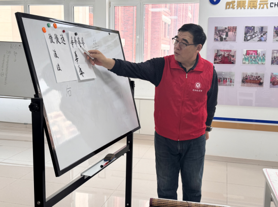 笔墨飘香处,志愿正当时。自沈阳市于洪区北陵街道中海城北苑社区幸福教育课堂书法课开办以来,这一方小小的课堂里,社区志愿者丁先生怀揣着对传统文化的热爱与服务邻里的赤诚,为辖区内的小朋友和老年朋友搭建起传承书法艺术的桥梁,用实际行动书写着新时代志愿服务的动人篇章。