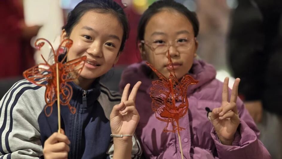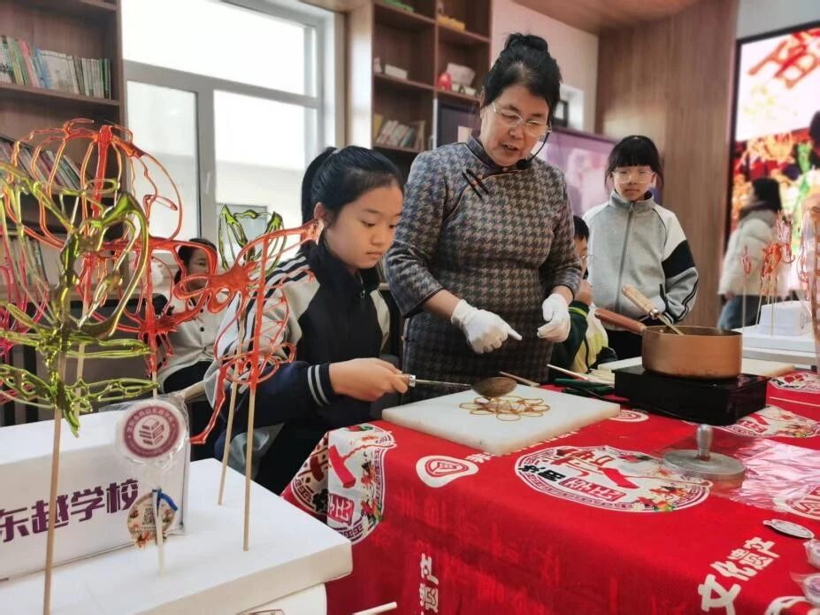 指尖上的文化传承力量 “熬糖、拉丝、塑形,短短几分钟,一只栩栩如生的龙形糖人就做好了!”在李氏糖人非遗工作室里,沈阳市尚品东越学校的同学们惊叹于传统技艺的神奇,大家一边观看糖人制作技艺演示,一边聆听李氏糖人百年传承的故事:“这门手艺不仅是谋生的技能,更是老祖宗留下来的文化瑰宝,需要一代代人守护下去。”同学们跃跃欲试,在老师的指导下,小心翼翼地熬糖、拉丝,虽然制作的糖人略显稚嫩,但每一个作品都承载着对非遗文化的热爱。学校还将非遗体验与思政教育结合,引导学生感悟匠人精神中“精益求精、坚守传承”的内涵,培养责任担当意识。
