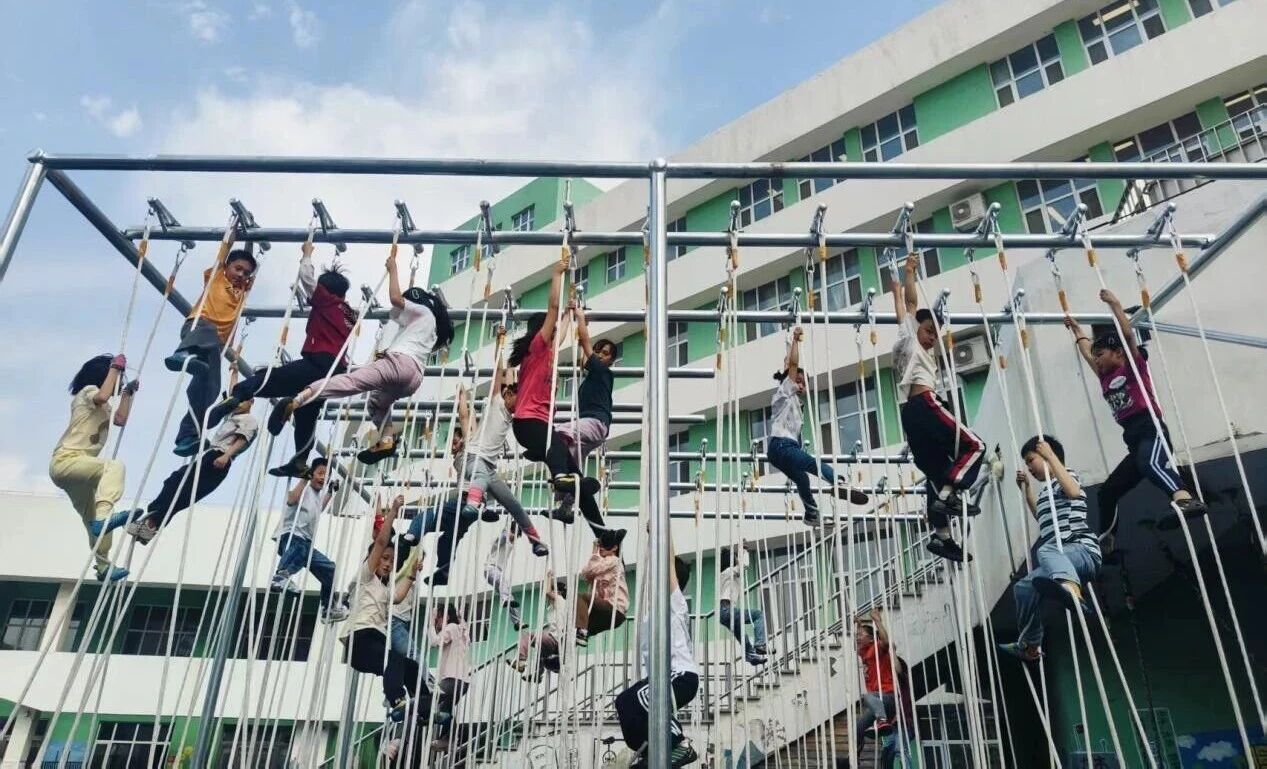 重构时空,保障运动基础。创新实施“一堂两段三清”课堂模式,“一堂”是将一节课时长调整为1小时,完成时间维度的基础优化;“两段”是国家课程与脑动力课程,实现课程内容的科学配比;“三清”是“当堂学、当堂练、当堂判”,切实达成课堂提质增效。依托这一课堂模式的系统重构,将课间时间整合为上午、下午各1小时集中户外活动,结合课后服务及寒暑假托管,日均户外活动达3小时以上,晨跑3000米成为学生常态。打破传统校园空间布局,建设攀岩墙、荡桨池、小轮车训练场等立体运动设施,营造浸润式运动环境,让学生在自主活动中实现身脑心协同发展。