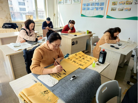 课程伊始,老师采用“示范讲解+个性化指导”的方式,手持毛笔现场示范,慢动作展示笔画的起承转合,细致讲解握笔、运笔的技巧,着重纠正学员们在书写中存在的笔画力度不足、结构疏密不均等问题。针对不同基础的学员,老师逐一指导,耐心解答大家的疑问,从单字的结构布局到通篇的行气连贯,都给予细致点拨,鼓励学员们多临摹、多练习,在反复打磨中领悟行书“飘若浮云,矫若惊龙”的韵味。学员们凝神聚力、潜心练习,一笔一划临摹碑帖,认真记录老师讲解的要点,不时互相交流临摹心得,尽显对书法艺术的执着与热爱。