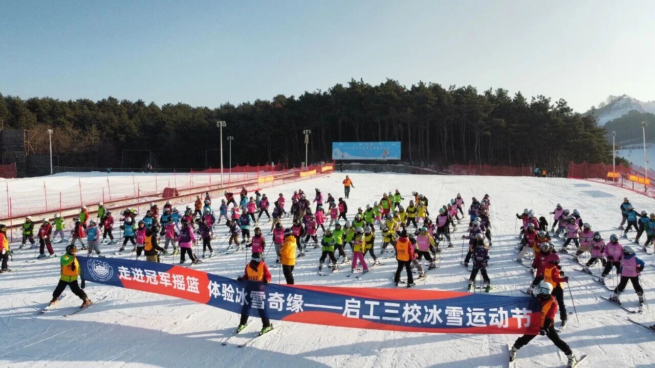 沈阳市铁西区启工三校教育集团立足北方地域特色,以“冰上童趣,雪育成长”为育人宗旨,创新构建“一体两翼三维驱动”冰雪育人模式,让冰雪运动从“小众体验”走向“全员参与”,实现五育融合的常态化实践。 构建多层次课程体系,夯实育人核心基础。以“三原色课程”理念为引领,将冰雪运动融入“忍冬绿课程群”,打造“1+3+N”课程生态。基础普及层面,对常规体育课进行“冰雪化”改造,创编《双板滑雪》校本教材,推行“轮转冰、陆替冰”模式,非雪季开展轮滑训练,将冰雪元素渗透道法、美术、语文等全学科。社团提升层面,成立“冰雪奇缘社团”,邀请专业滑雪教练授课,联动体校、专业冰场资源,1970余名学生参与实践课程并100%掌握双板滑雪技能。思政育人层面,通过雪雕创意、冠军进校园等活动,将冰雪运动与品格塑造相结合,短道速滑世界冠军张菊菊走进校园传递拼搏精神。