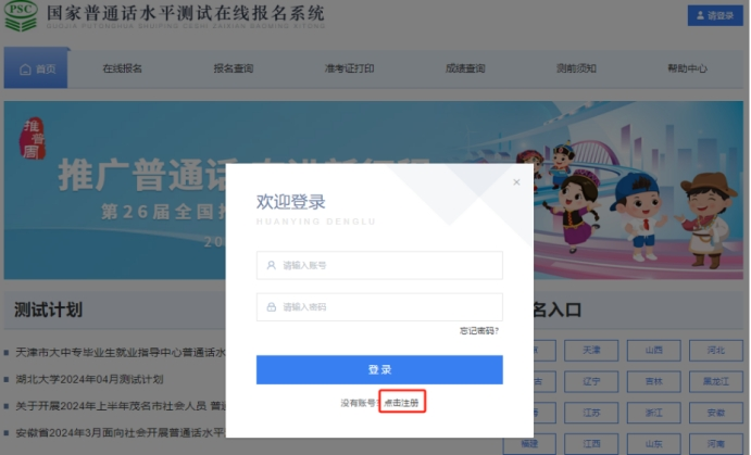 根据《普通话水平测试管理规定》(教育部令第51号)及我市2025年普通话水平测试工作计划,现将10月份测试工作安排通知如下: 一、报名条件 符合下列条件之一的人员可报名。 1.沈阳户籍人员; 2.在沈工作且持沈阳居住证(有效期内)的外地户籍人员; 3.市属高校(沈阳大学、沈阳医学院、沈阳职业技术学院、沈阳开放大学)或市属、区属中等职业学校在校学生。 经审核,不符合条件的人员将取消报名及测试资格。 二、测试流程 网上报名→网上资格审核→打印准考证→现场资格审核→测试(现场采集照片)→成绩查询→证书发放 (一)网上报名 10月份测试计划1428人。 1.网上报名,报名网址:国家普通话水平测试在线报名系统https://bm.cltt.org/(建议使用谷歌浏览器) 2.报名前,请对照报名条件提前准备好相关证明。报名时,上传至报名系统。 3.报名步骤: (1)登录“国家普通话水平测试在线报名系统”,点击“请登录”。 登录界面“点击注册”。报名前,须提前注册,实名制完善个人信息;请认真、准确填报信息,报名时系统自动提取注册填报的个人信息。