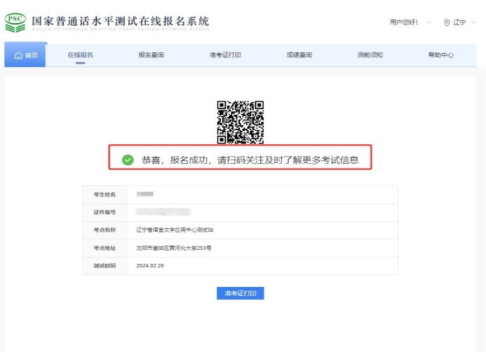(二)网上资格审核 考生须认真对照报名条件,上传相关证明。经网上资格审核,不符合条件的考生将取消报名资格。报名时间(10月11日10:00—17:00)随时将未通过审核的名额重新下放,请及时关注“剩余名额”。(三)打印准考证 通过网上资格审核的考生,请在测试日前2日登录“国家普通话水平测试在线报名系统”,自行打印准考证。按准考证规定的时间参加现场资格审核、现场采集照片和测试。