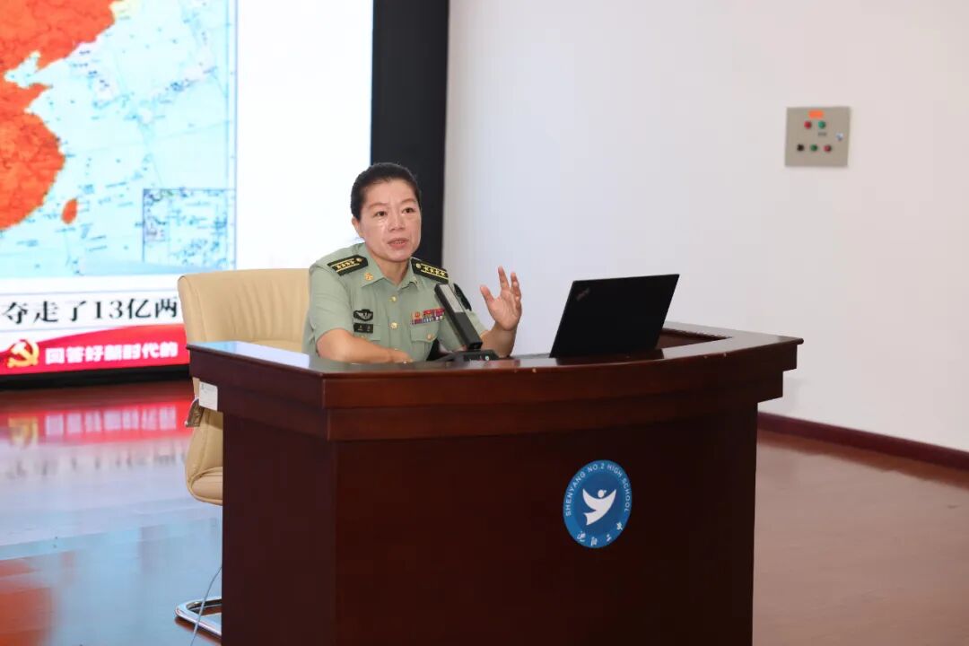 8月24日,初秋的晨光透过沈阳市第二中学大礼堂的玻璃窗,映照在近千名高一新生青春洋溢的脸庞上。为迎接即将到来的开学和军训,上午9时整,庄严的国歌声响起,一场以"传承红色基因,担当强国使命"为主题的"开训第一课"拉开帷幕。 课程伊始,陆军兵种大学某士官学校王鑫教员登台,以"回答好新时代的'爱国三问'"为题,为学生们带来了一场思想深刻又贴近时代的讲座。