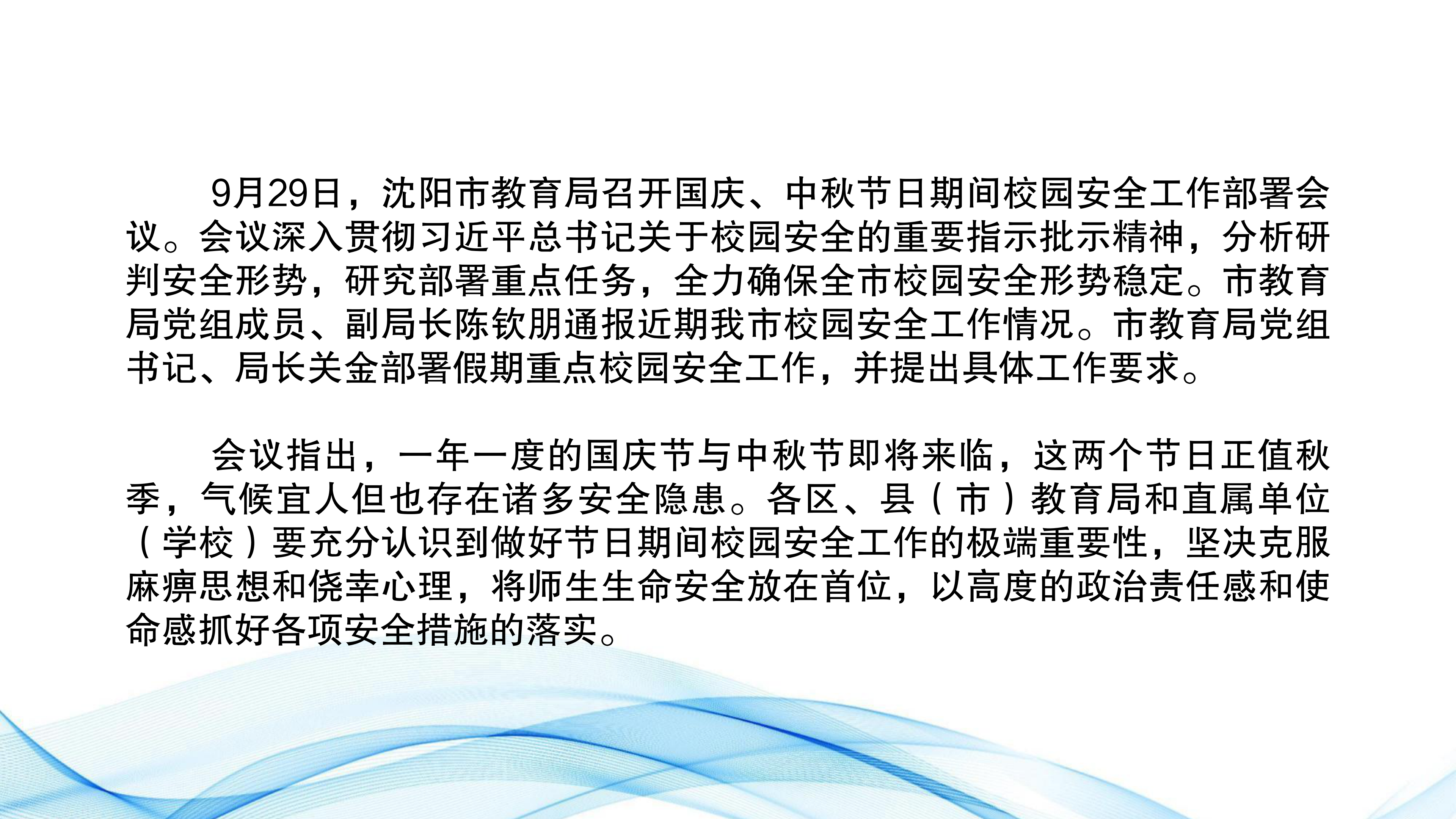 沈阳市教育局召开国庆、中秋节日期间校园安全工作部署会(图解版)