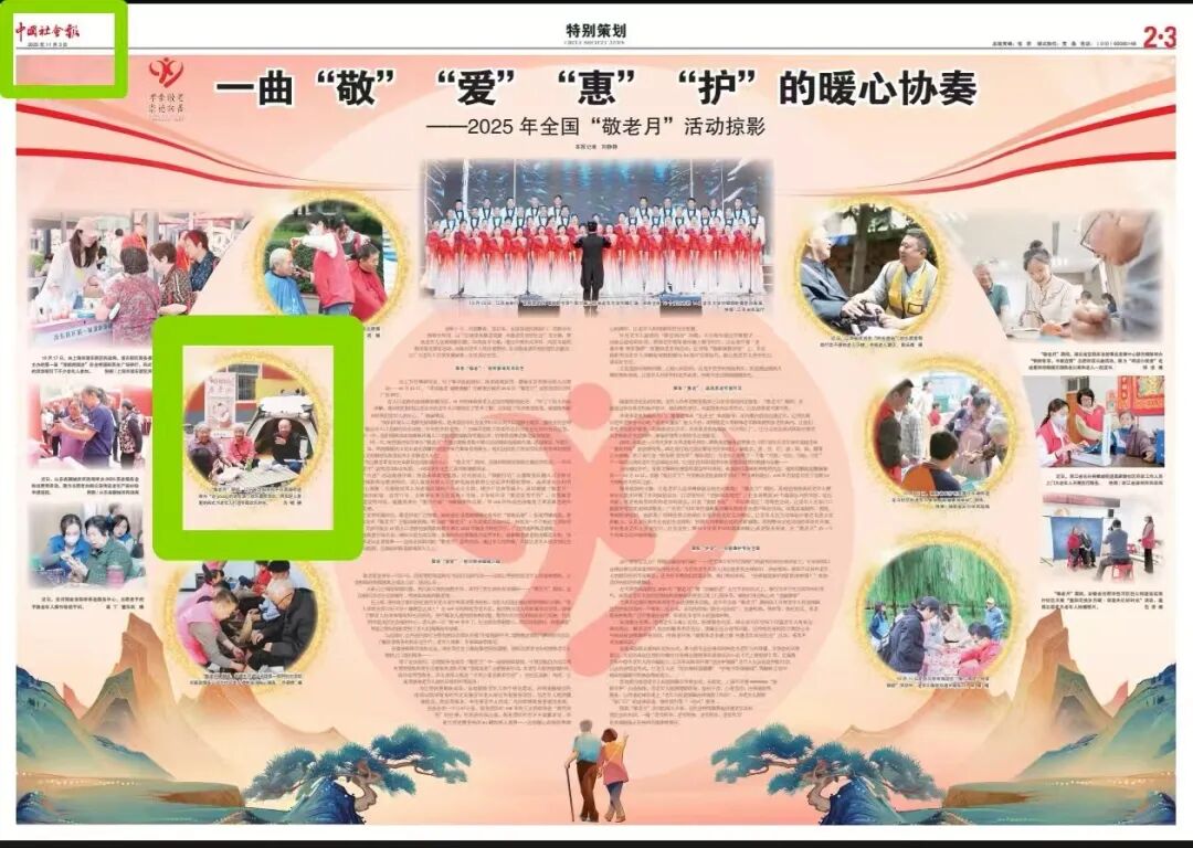 近日,由沈阳市教育局推送的和平区南湖街道“这young的老年派”欢乐露营活动,在2025年11月3日《中国社会报》全国“敬老月”特别策划专刊刊登。